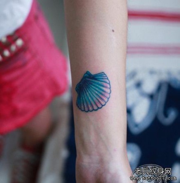 女孩子手臂彩色小贝壳纹身图案