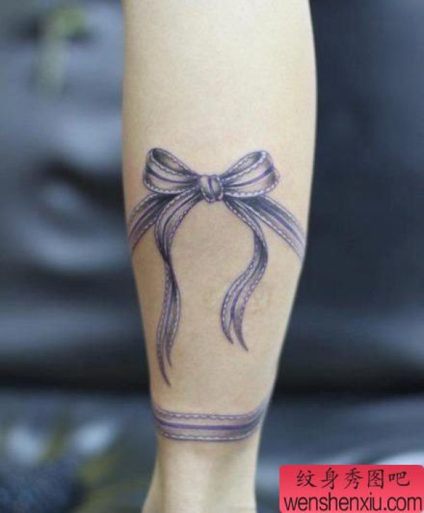 女孩子腿部时尚的蝴蝶结纹身图案