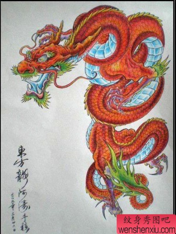 龙纹身手稿_一组老传统黑灰龙手稿纹身图案