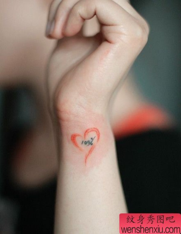 女生手腕处彩色小爱心纹身图案