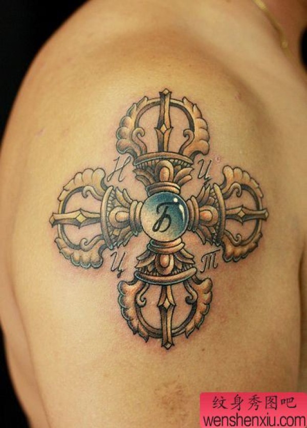 手臂一张经典好看的金刚杵纹身图案