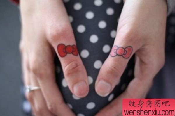 女生手指简单的蝴蝶结纹身图案