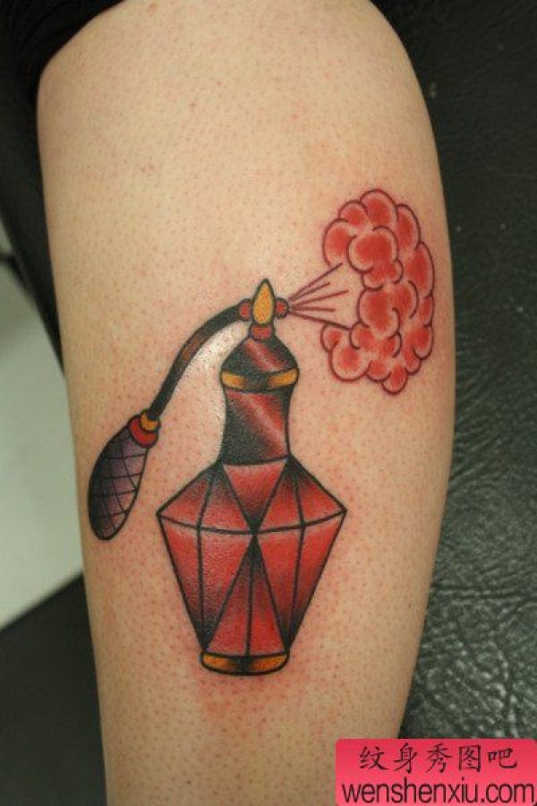 腿部时尚另类的一张香水纹身图案