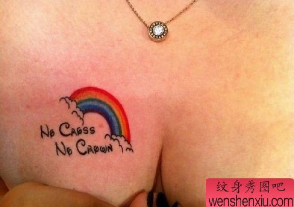 美女胸部彩色小彩虹纹身图案