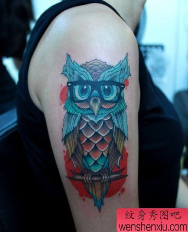 女孩子手臂欧美风格的猫头鹰纹身图案