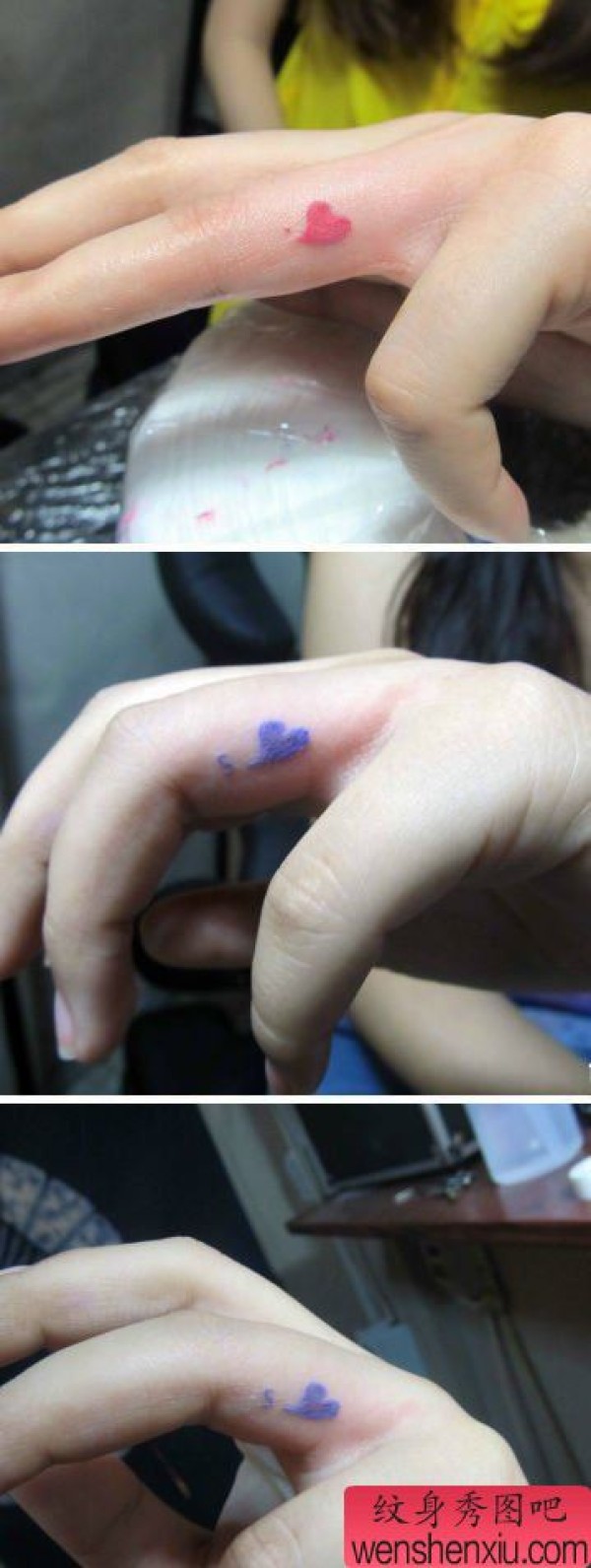 女生手指好看的彩色小爱心纹身图案