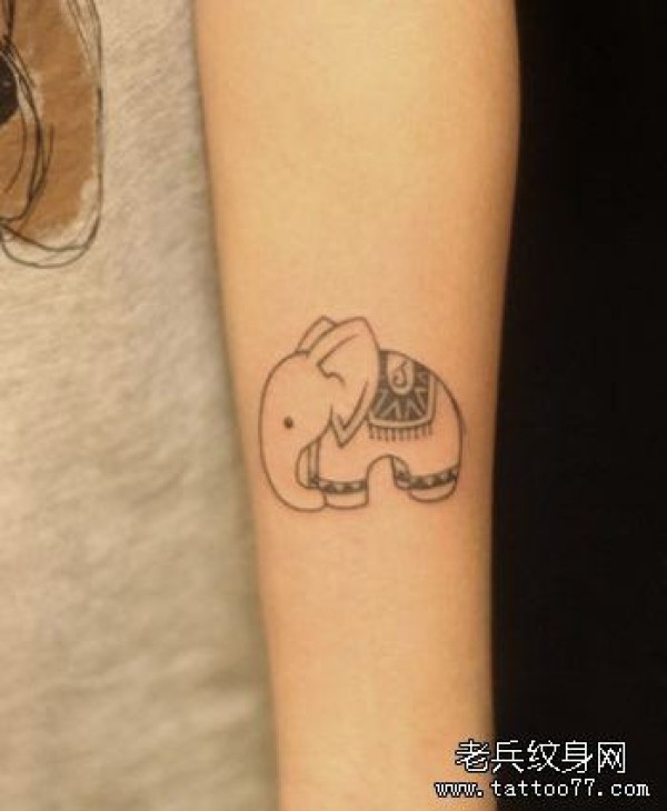 女生手臂简单的小象纹身图案