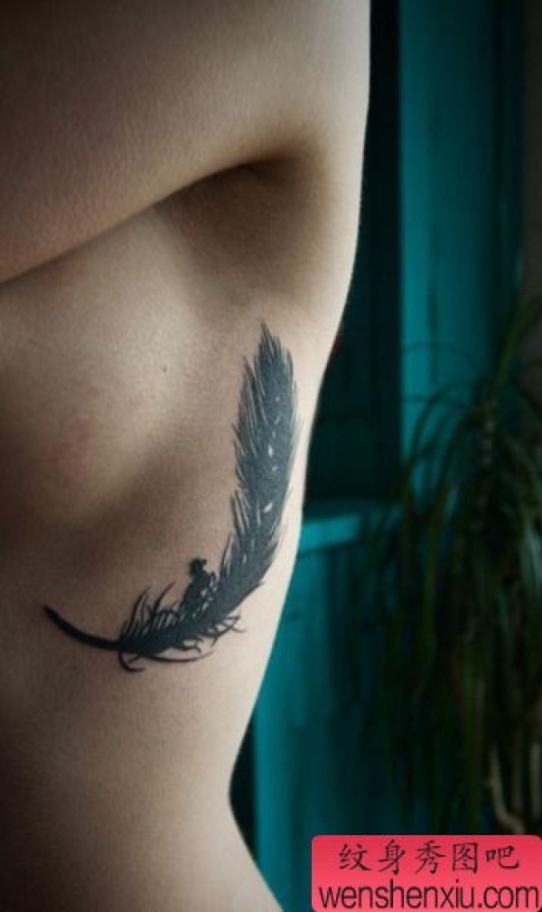 美女胸部一张图腾羽毛纹身图案