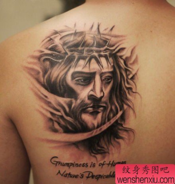 背部一张耶稣肖像纹身图案