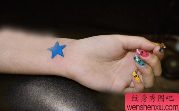 女孩子手臂漂亮的彩色小五角星纹身图案