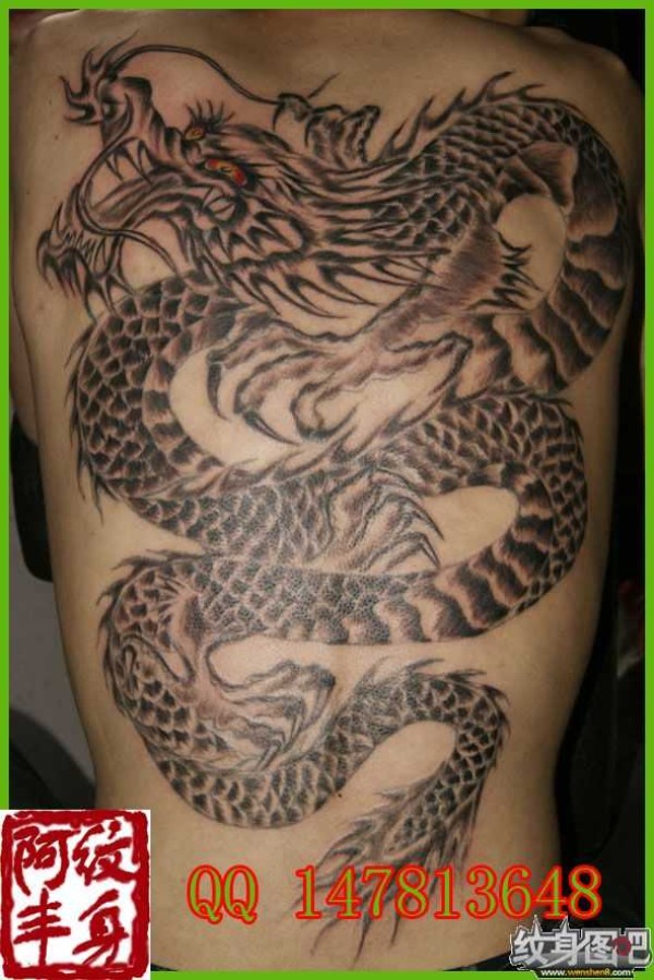 龙纹身手稿_一组老传统黑灰龙手稿纹身图案
