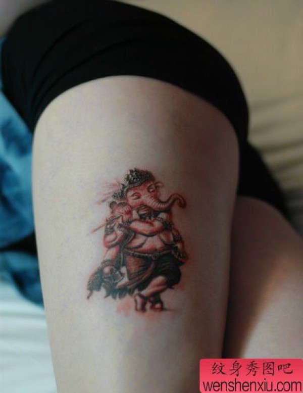 美女腿部一张经典的象神纹身图案