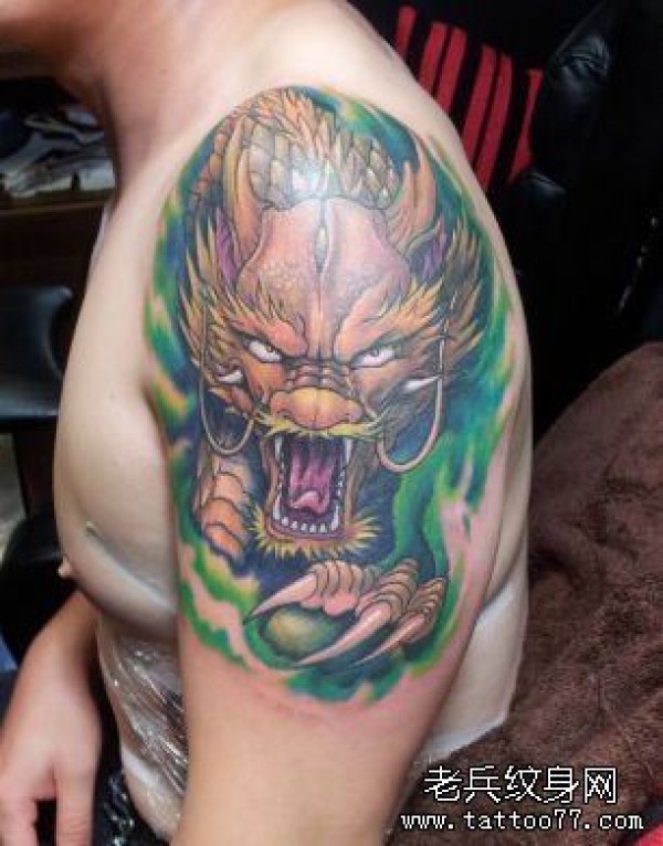 手臂好看的彩色龙纹身图案
