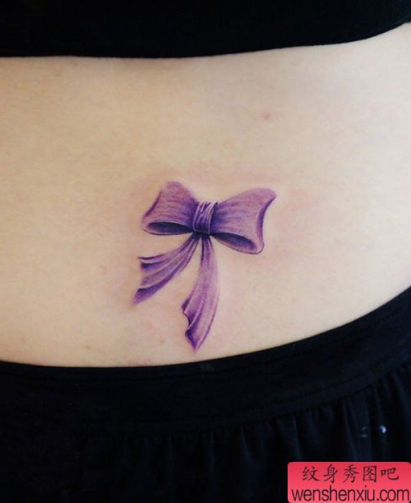 美女腰部漂亮的彩色蝴蝶结纹身图案
