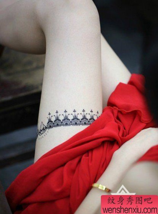 美女腿部性感时尚的蕾丝纹身图案