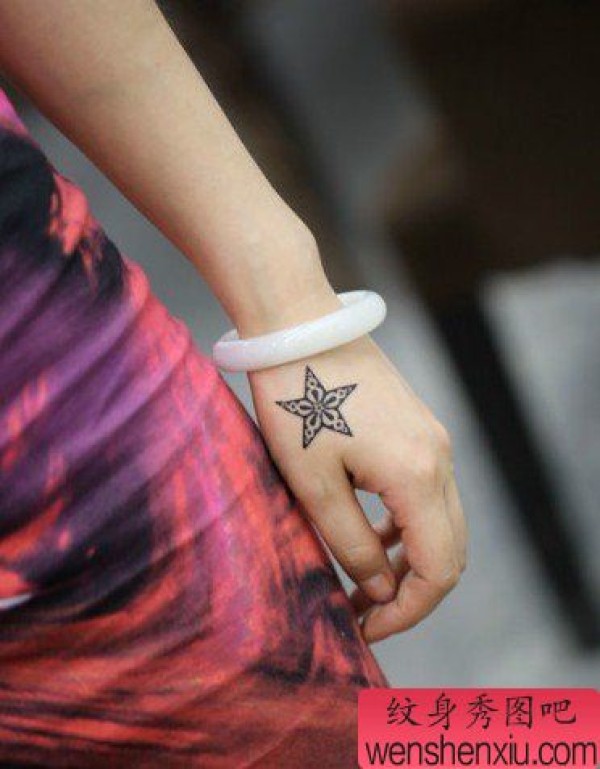 女孩子手部好看精美的五角星纹身图案