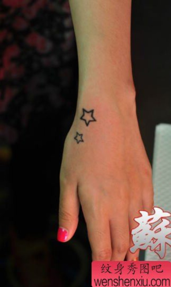 女生手部精致小巧的五角星纹身图案