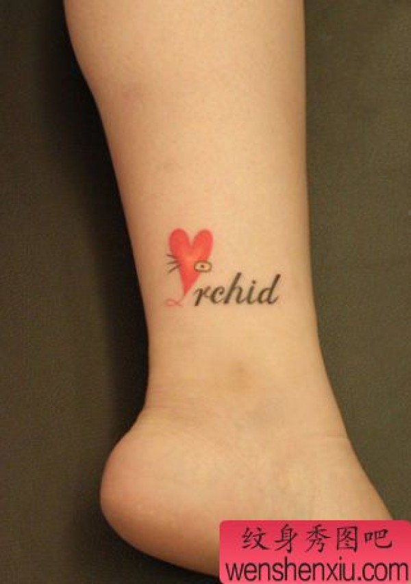 女生腿部可爱的爱心与字母纹身图案