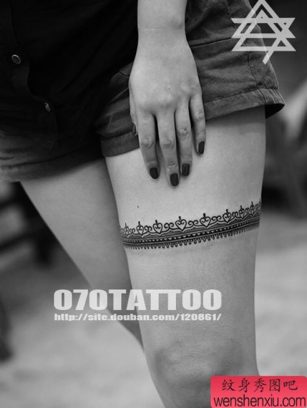美女腿部性感好看的蕾丝纹身图案