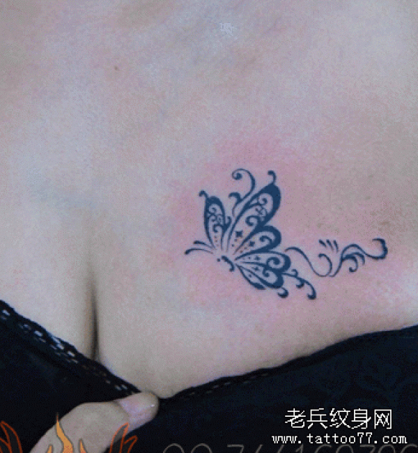美女胸部漂亮的图腾蝴蝶纹身图案