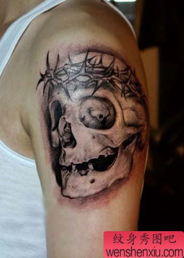 手臂写实的骷髅纹身图案
