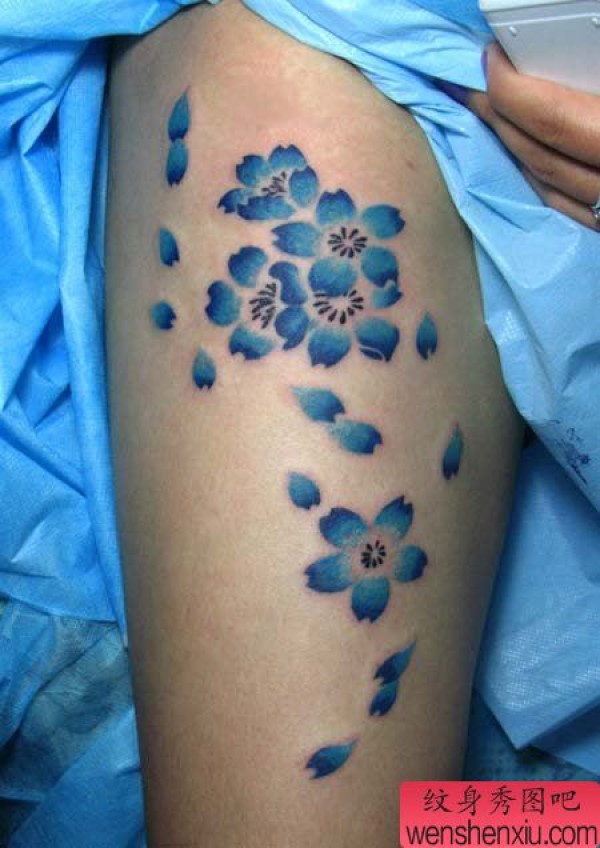 女生腿部好看的樱花纹身图案