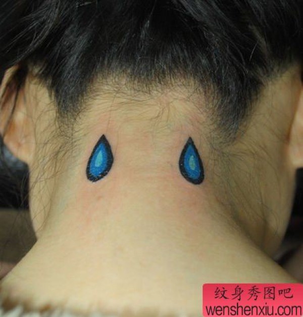 女生脖子处小水滴纹身图案