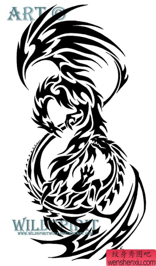超帅的图腾龙与凤凰纹身图案