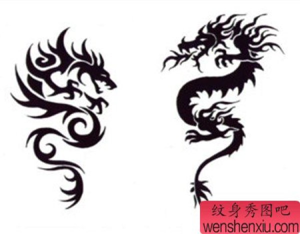 龙纹身手稿_一组老传统黑灰龙手稿纹身图案