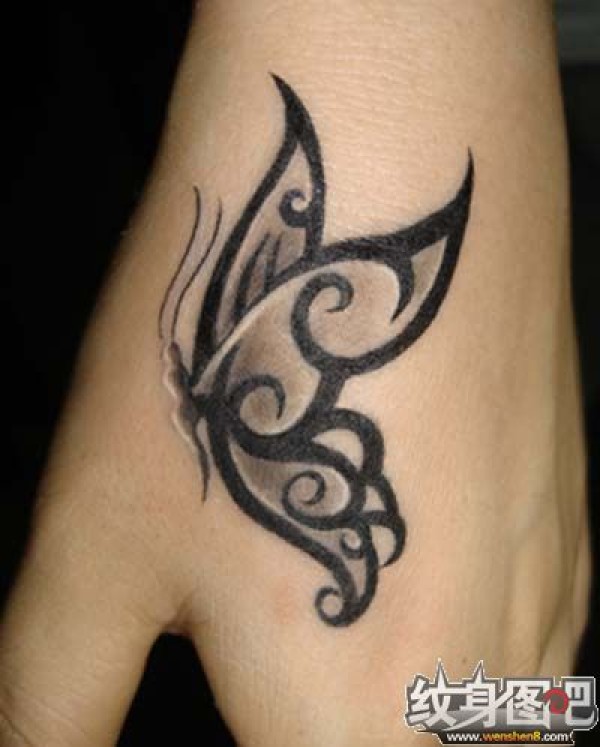 一组花手背纹身图案高调抢眼