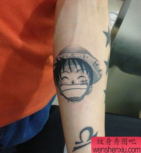 手臂卡通海贼王路飞头像纹身图案