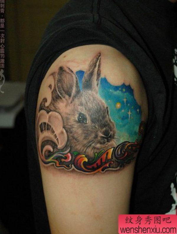 手臂一张小兔子纹身图案