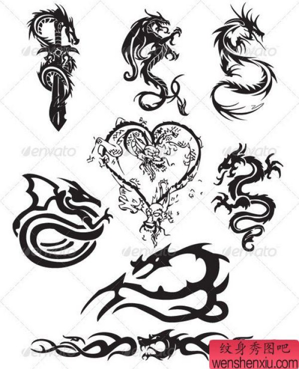 龙纹身手稿_一组老传统黑灰龙手稿纹身图案