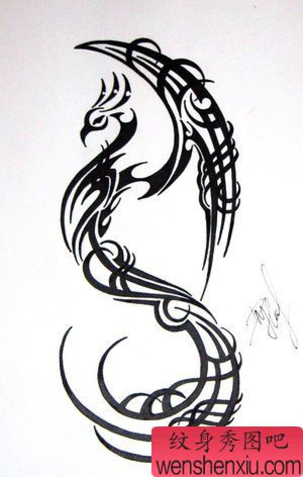 龙纹身手稿_一组老传统黑灰龙手稿纹身图案