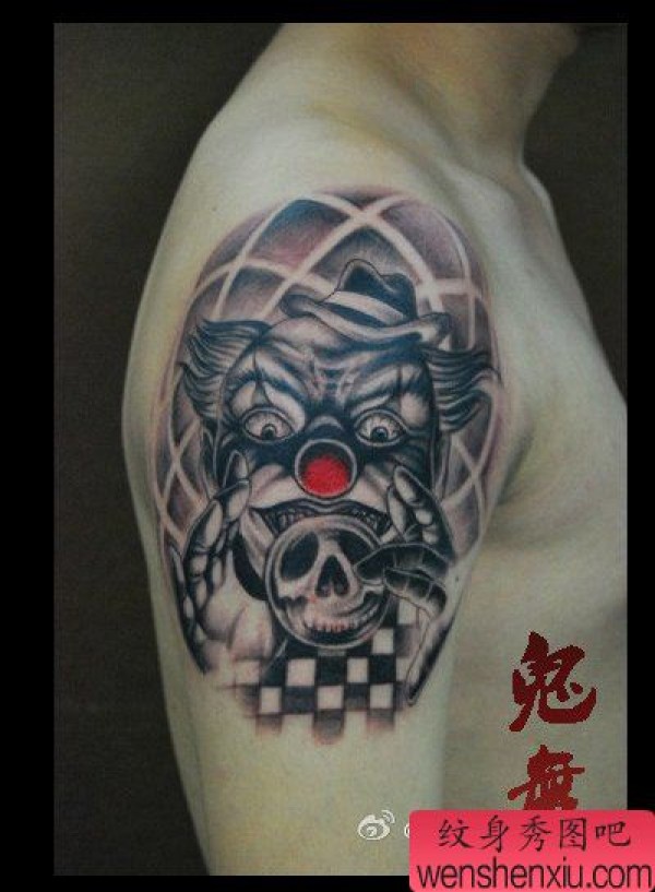 手臂一张帅气的小丑纹身图案