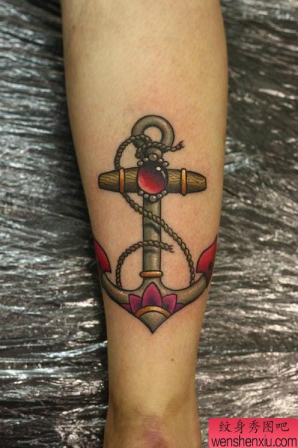 腿部好看漂亮的船锚纹身图案