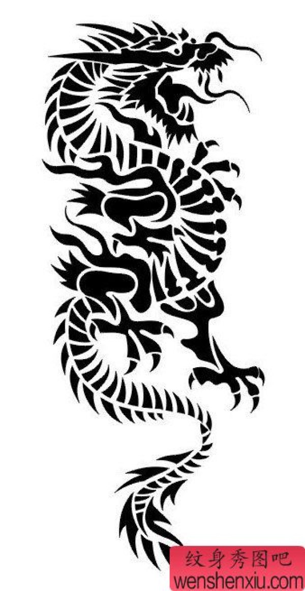 龙纹身手稿_一组老传统黑灰龙手稿纹身图案
