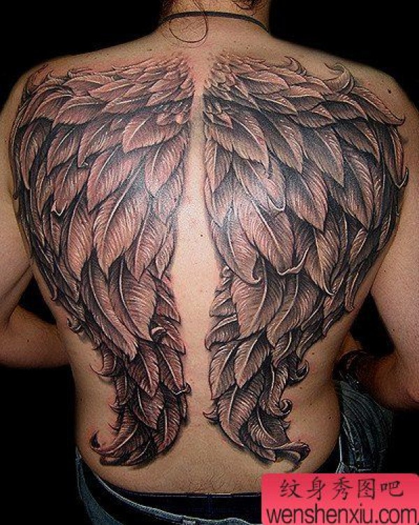 漂亮的满背翅膀纹身图案