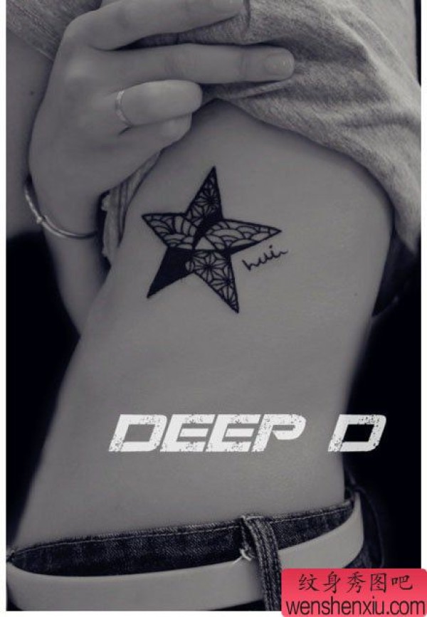 女生侧腰好看的五角星纹身图案