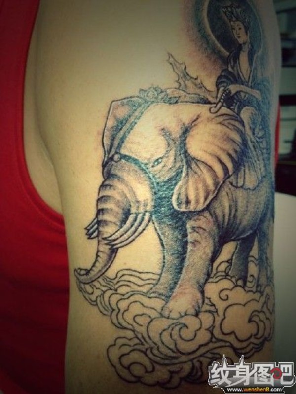 手臂黑灰象神_一组12张手臂上的黑灰象神纹身图案作品欣赏