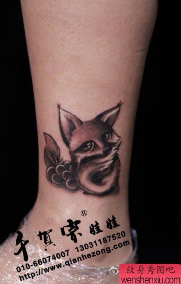 女生腿部小狐狸纹身图案