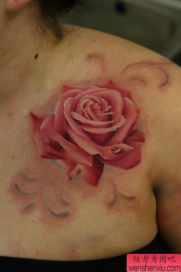 一张欧美彩色写实玫瑰花纹身图案