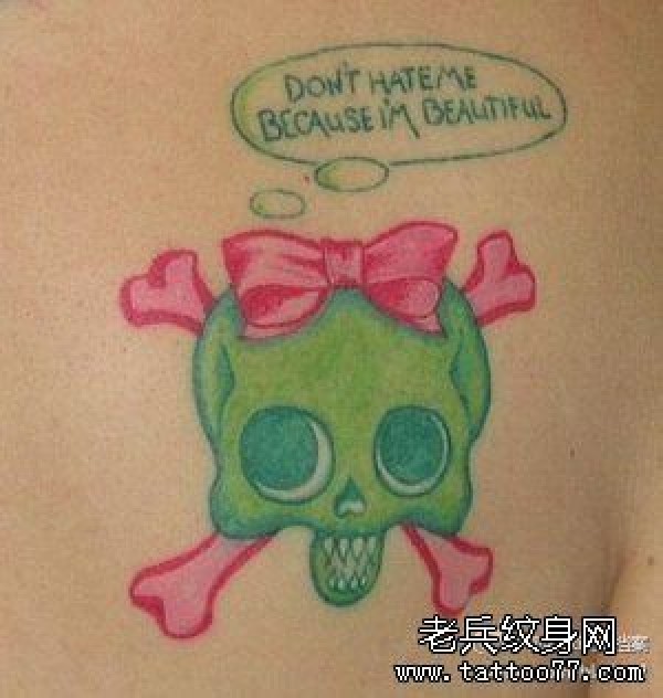 一张简单小巧的骷髅与蝴蝶结纹身图案