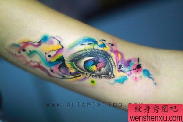 手臂漂亮的彩色眼睛纹身图案