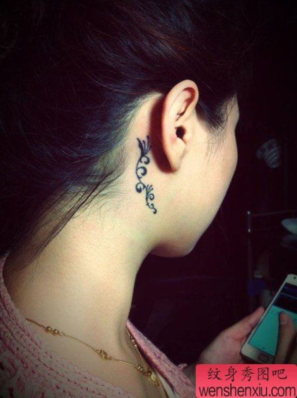 女孩子耳部漂亮的藤条藤蔓纹身图案