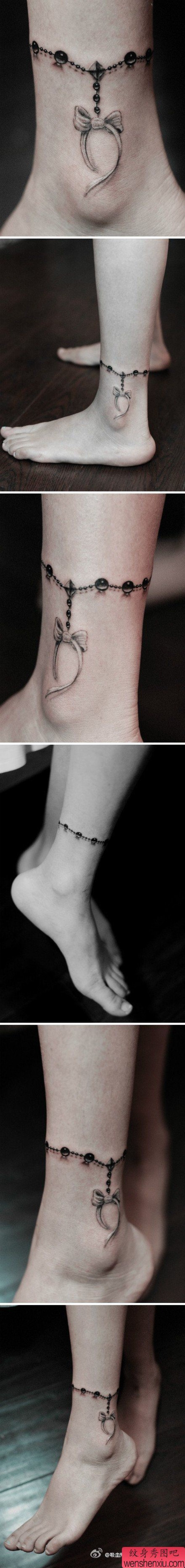 女孩子腿部精美时尚的脚链纹身图案