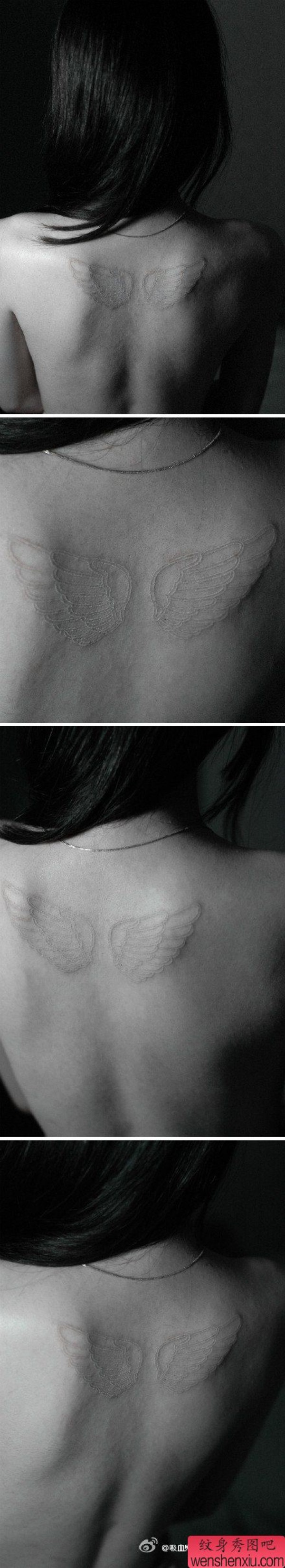 女孩子背部简单唯美的白色翅膀纹身图案
