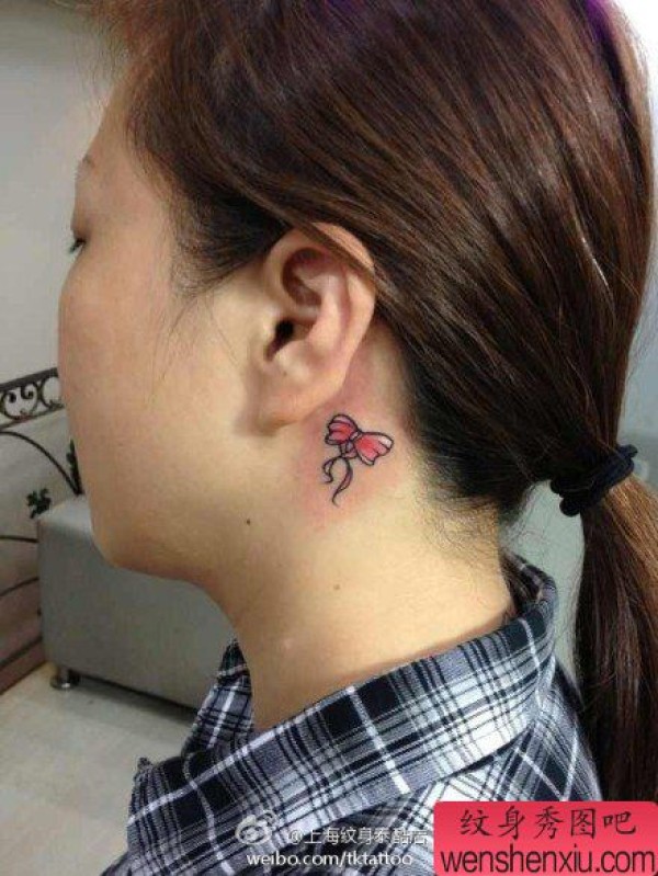 女孩子喜欢的耳部小巧的蝴蝶结纹身图案
