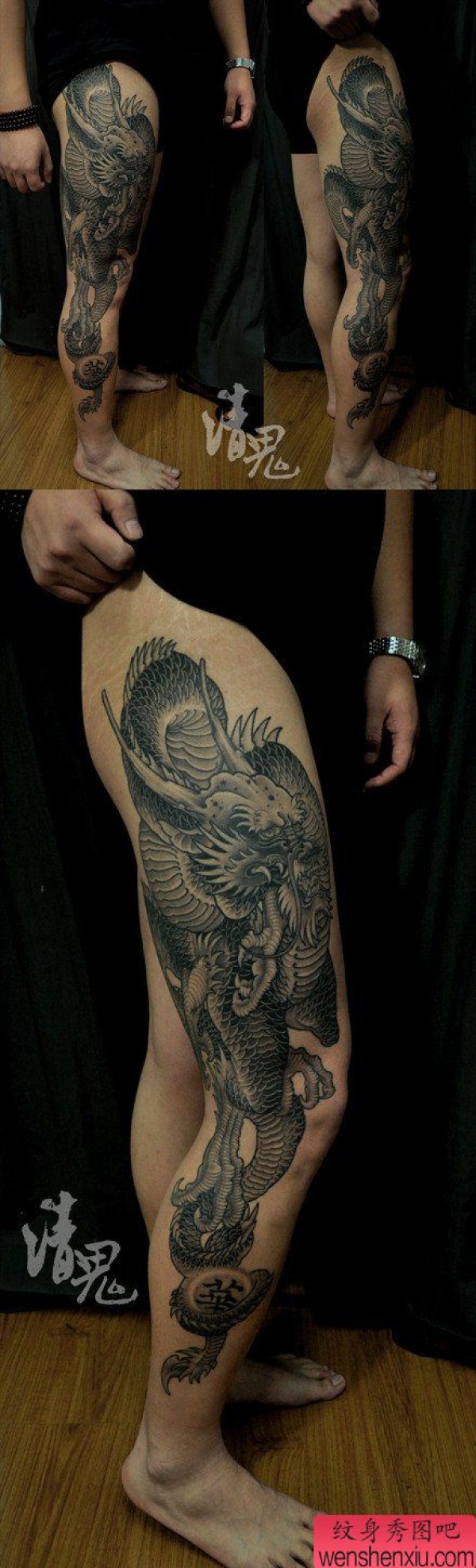龙纹身手稿_一组老传统黑灰龙手稿纹身图案
