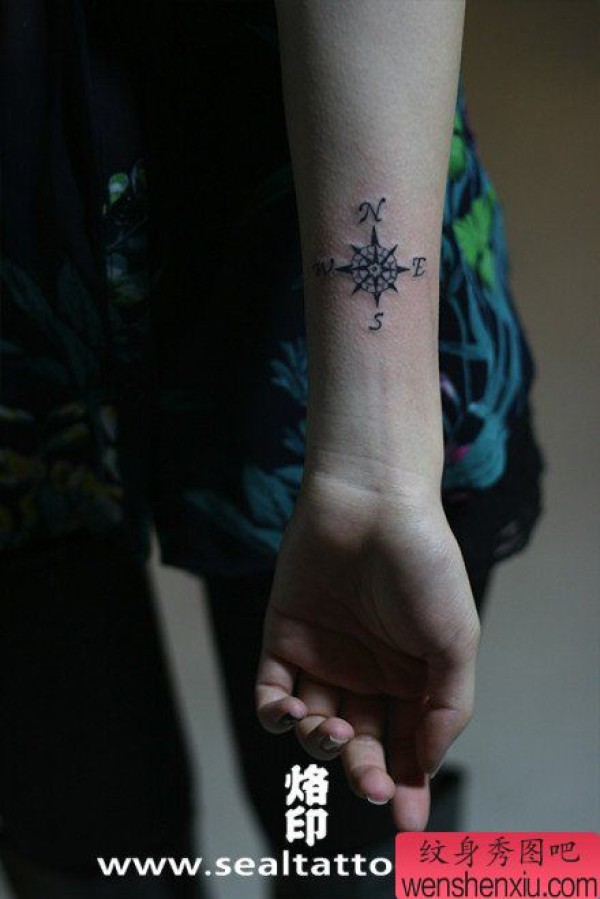 女生手臂时尚时尚的指南针纹身图案